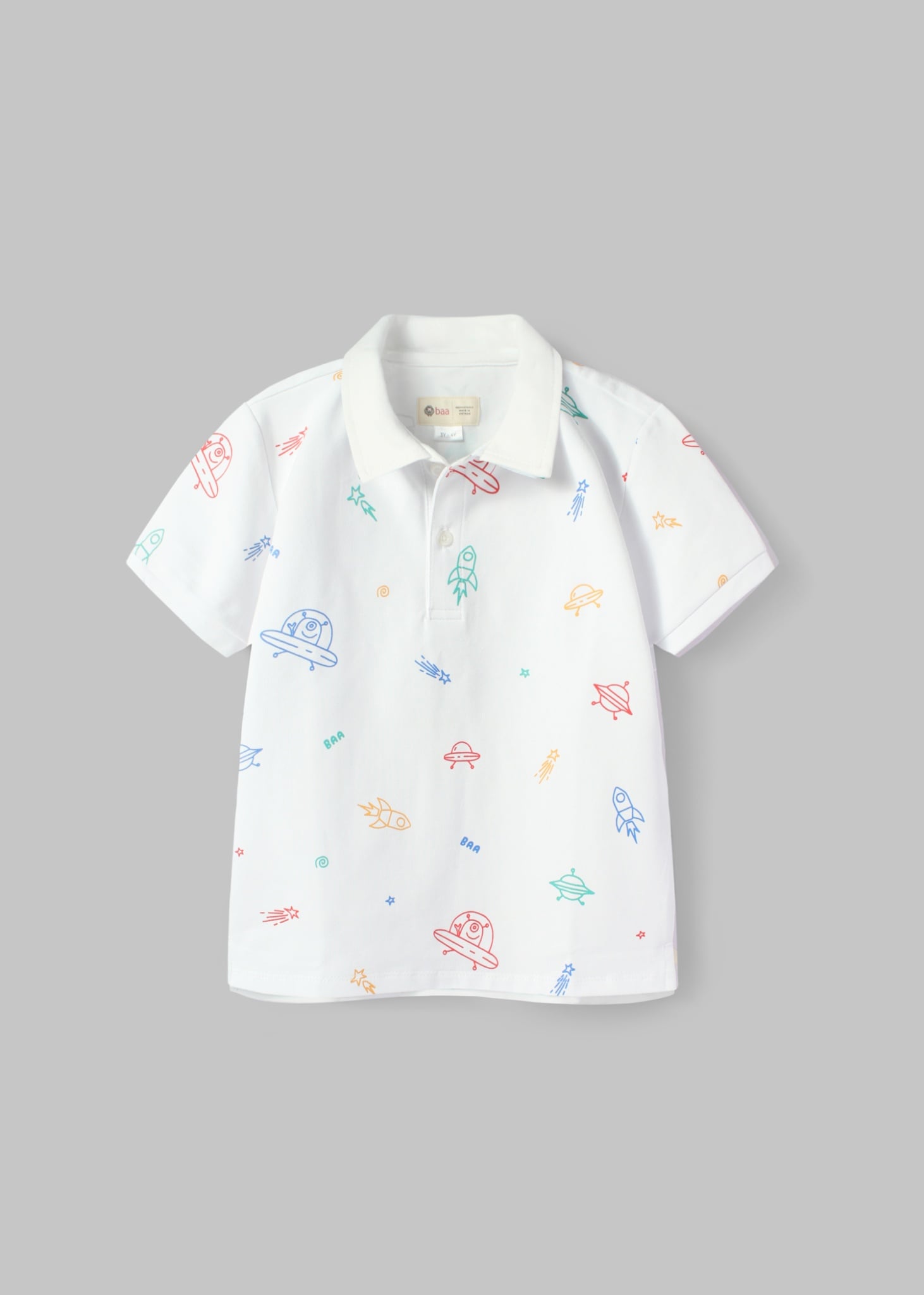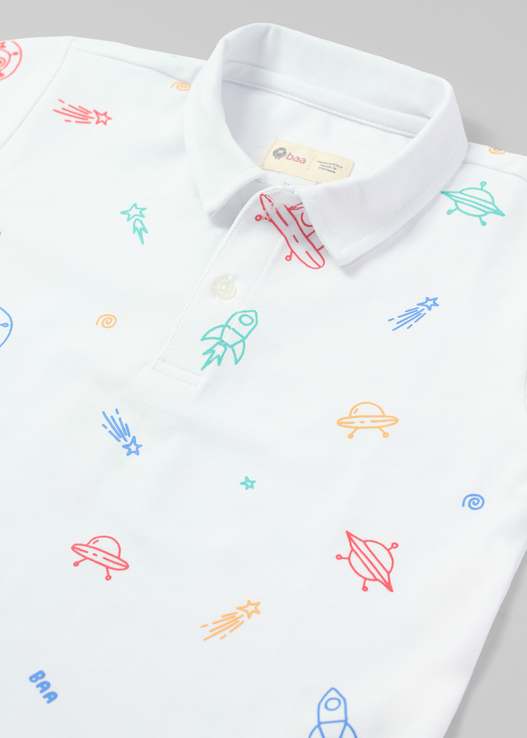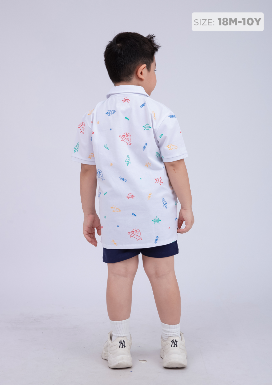 Áo Polo Ngắn Tay Bé Trai Trắng Hoạ Tiết Vũ Trụ ƯU ĐÃI ĐANG DIỄN RA