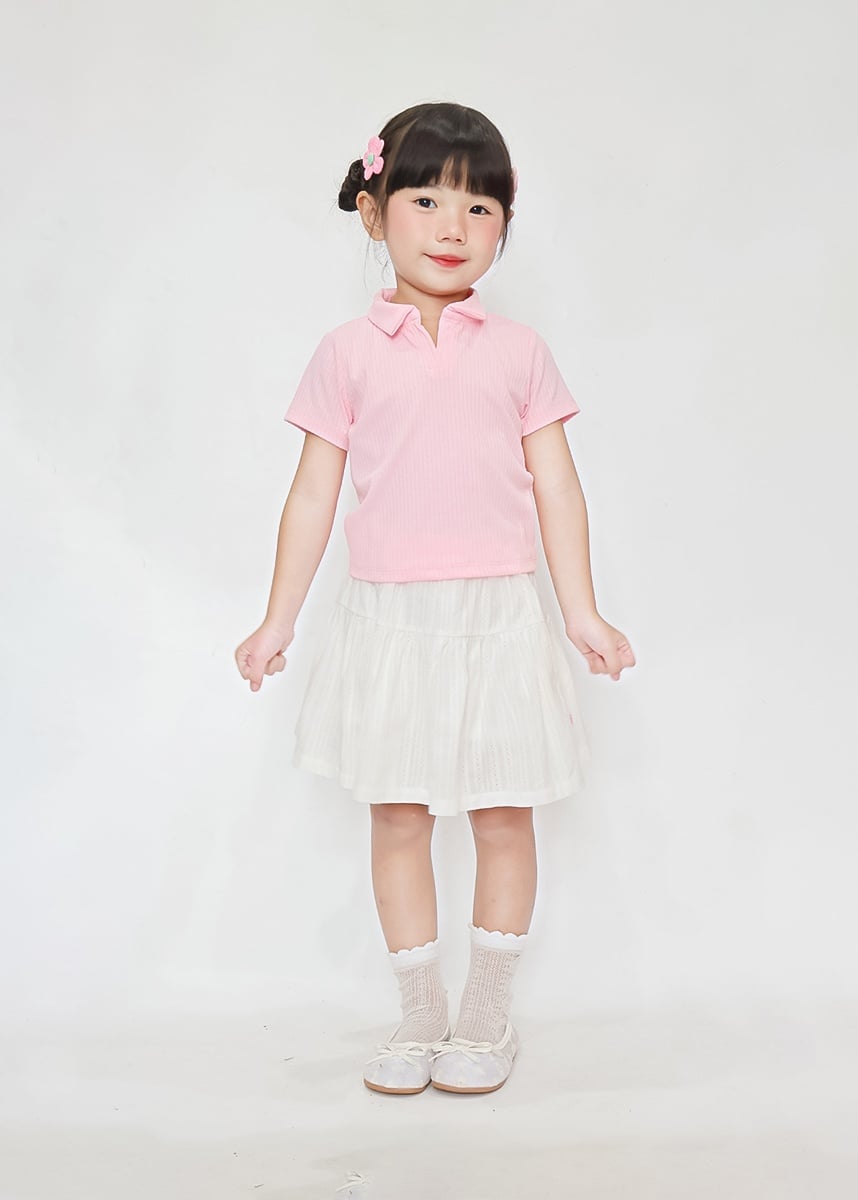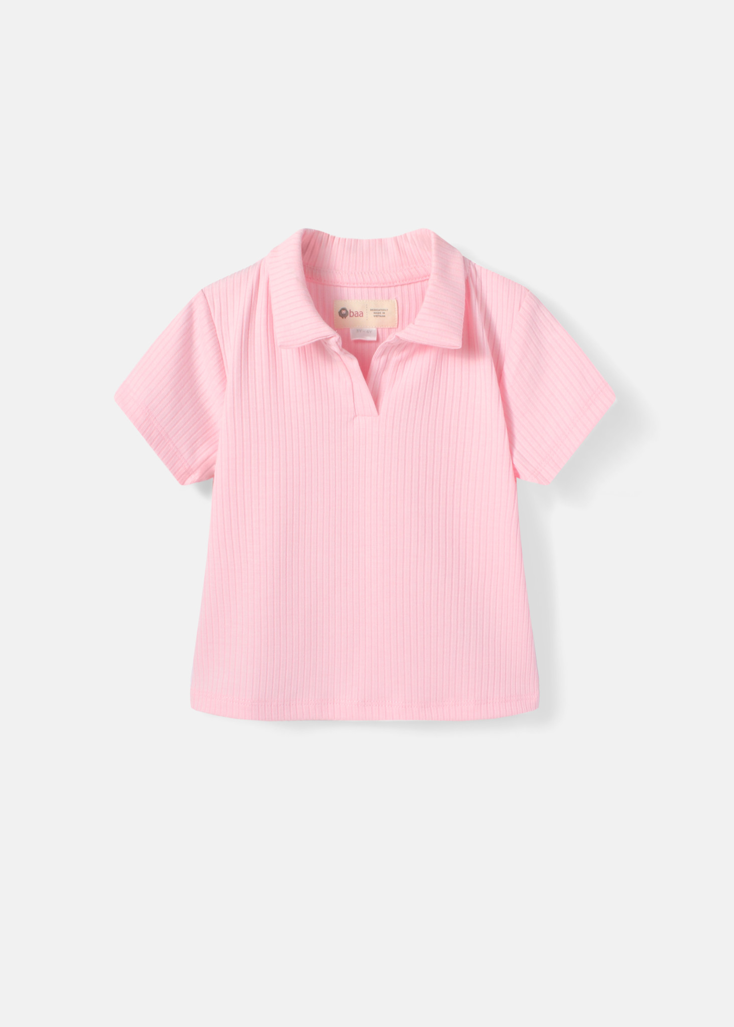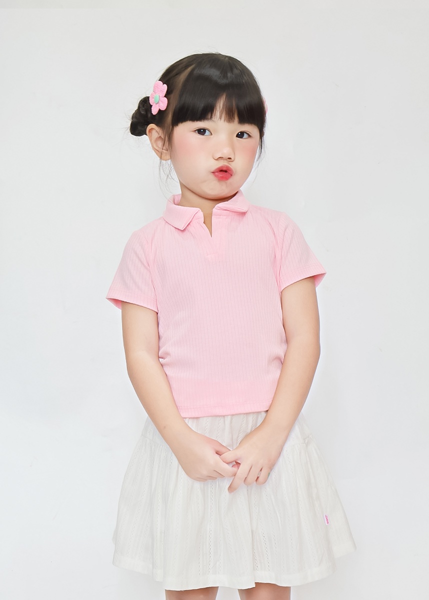 Áo Polo Thun Gân Bé Gái Hồng Nhạt