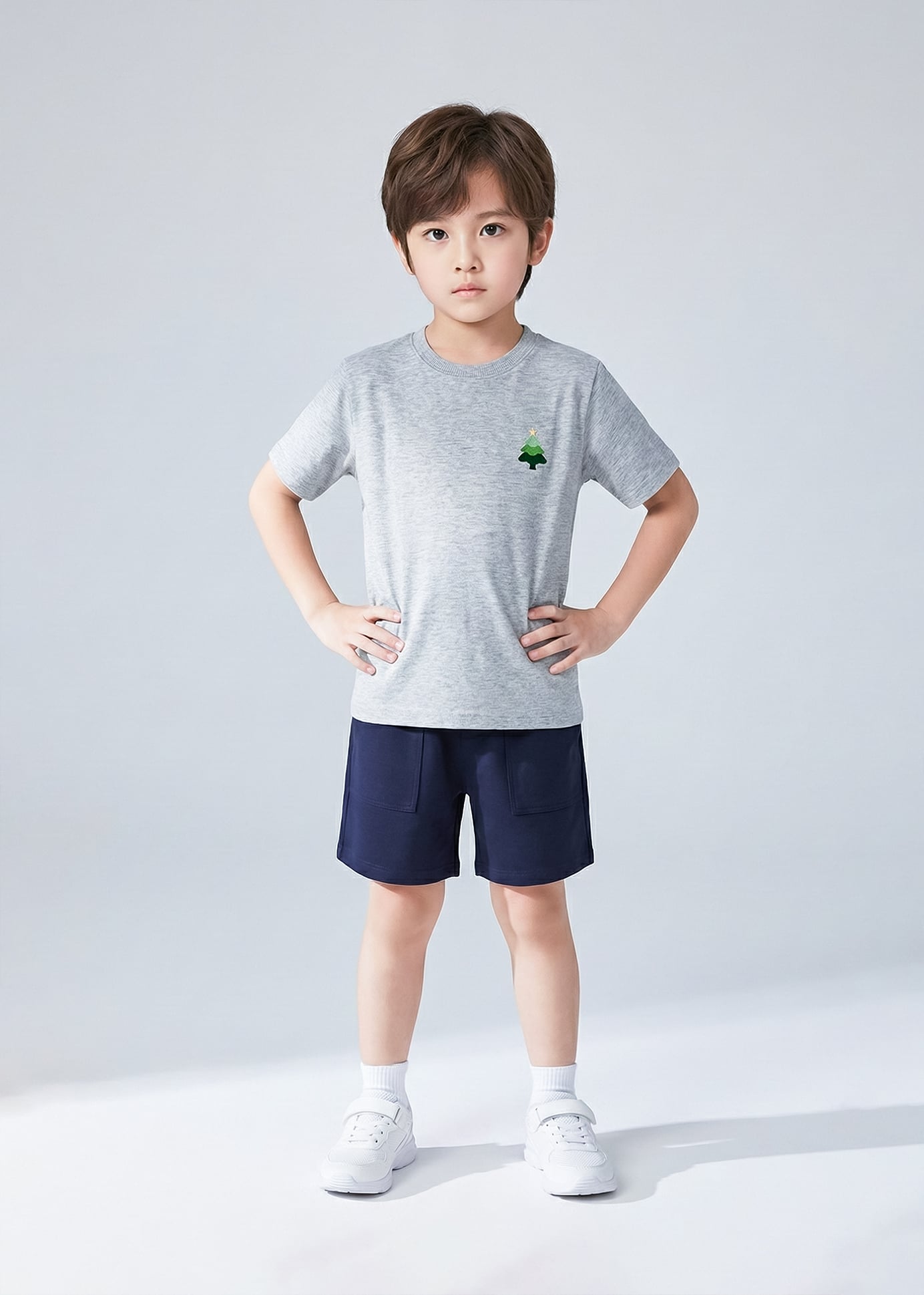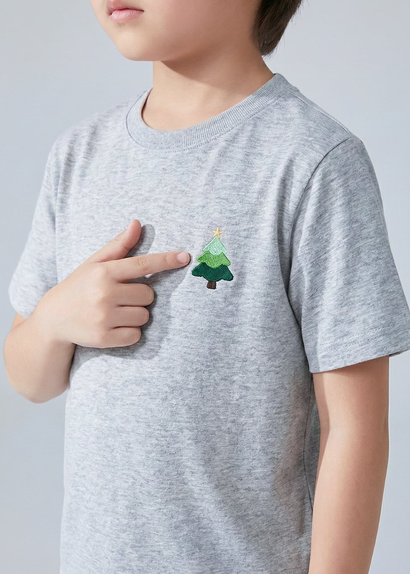 Áo Thun Form Rộng Bé Trai 210gsm Xám Thêu Cây Thông BC-AT30N-33