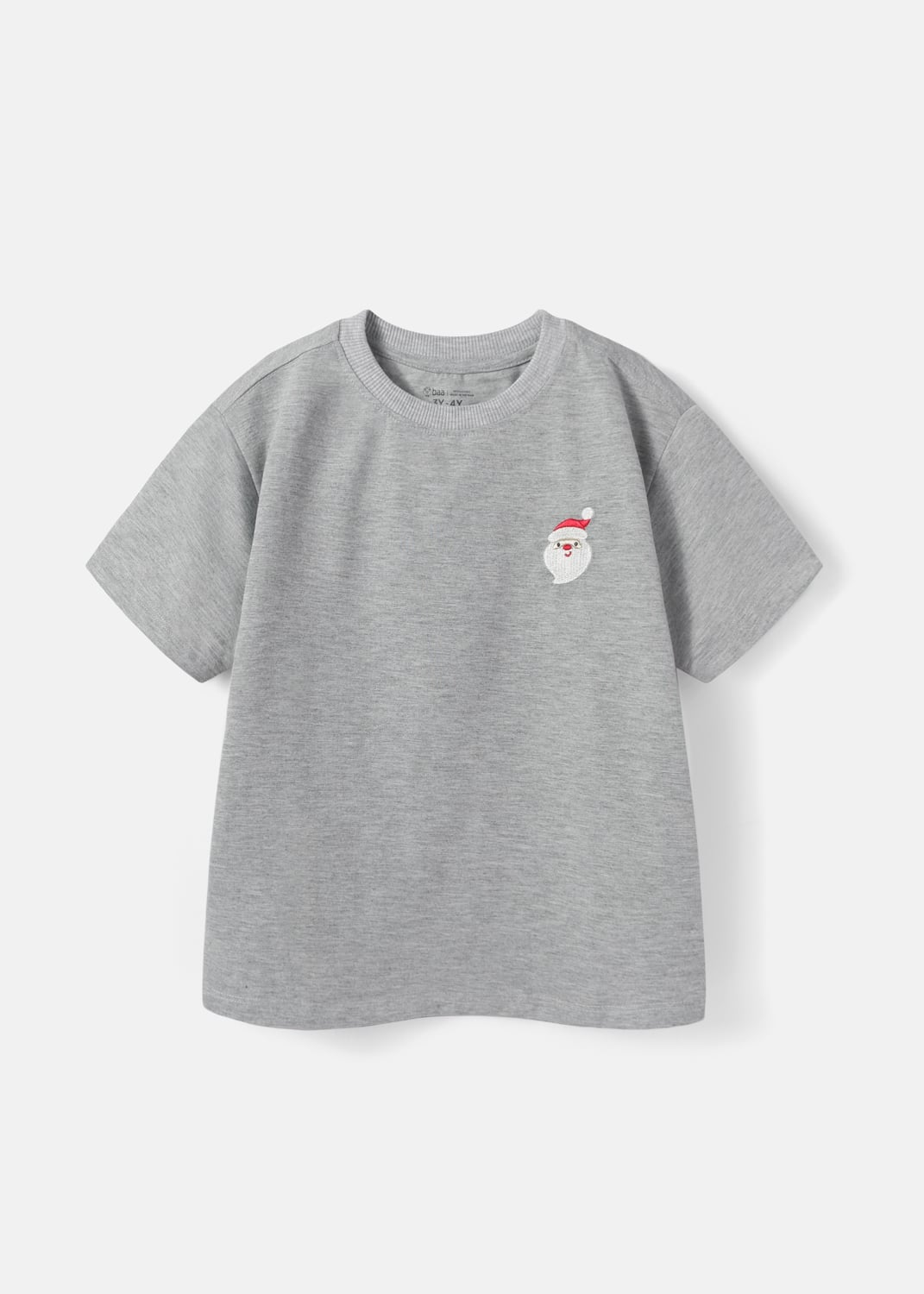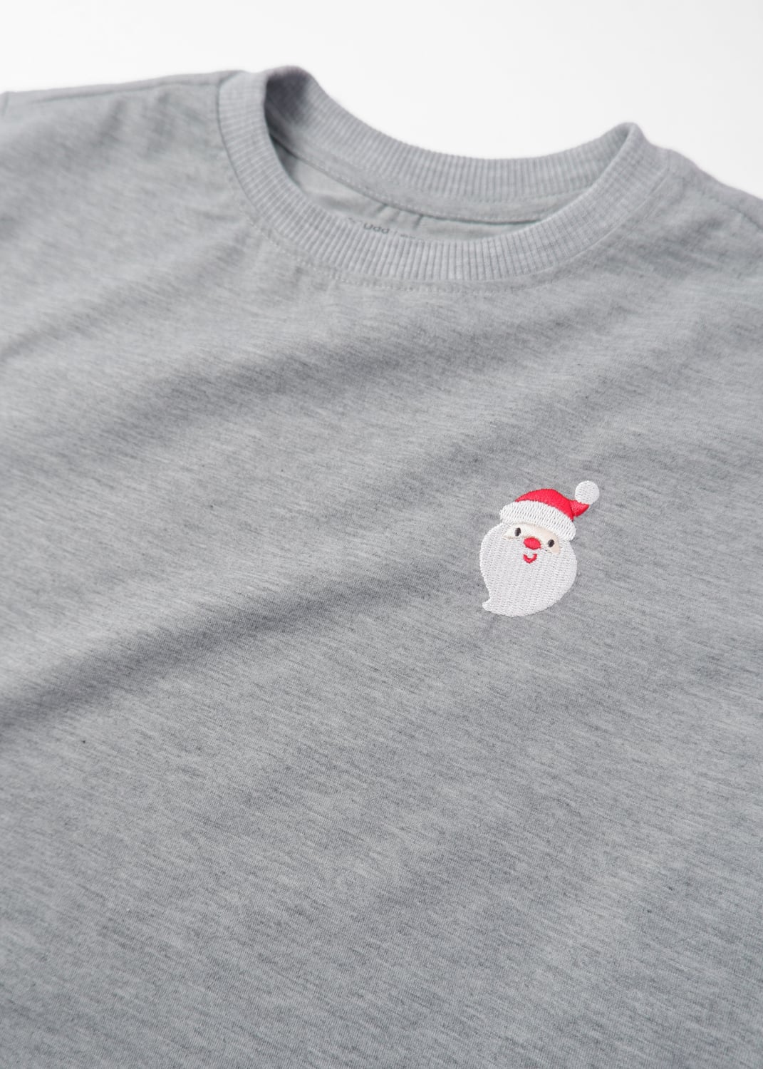 Áo Thun Form Rộng Bé Trai 210gsm Xám Thêu Ông Già Noel BC-AT30N-33