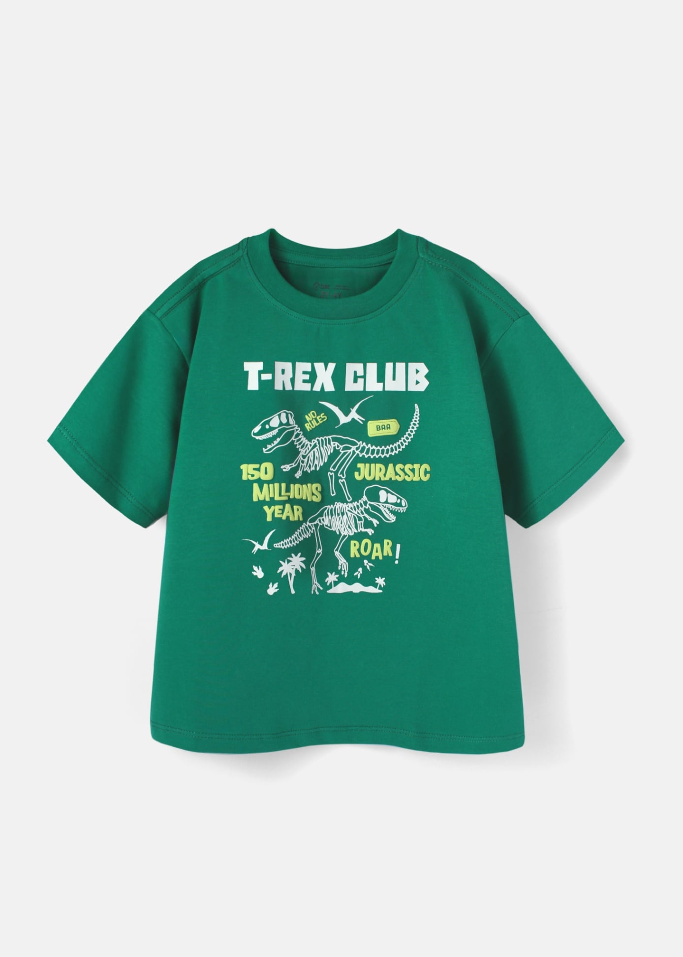 Áo Thun Form Rộng Bé Trai 210gsm Xanh Lá Khủng Long T-REX