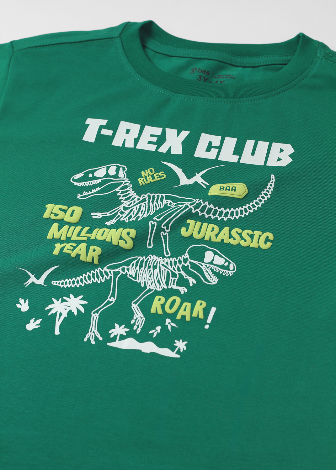 Áo Thun Form Rộng Bé Trai 210gsm Xanh Lá Khủng Long T-REX ƯU ĐÃI THÁNG 3