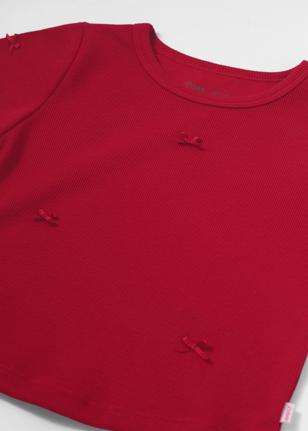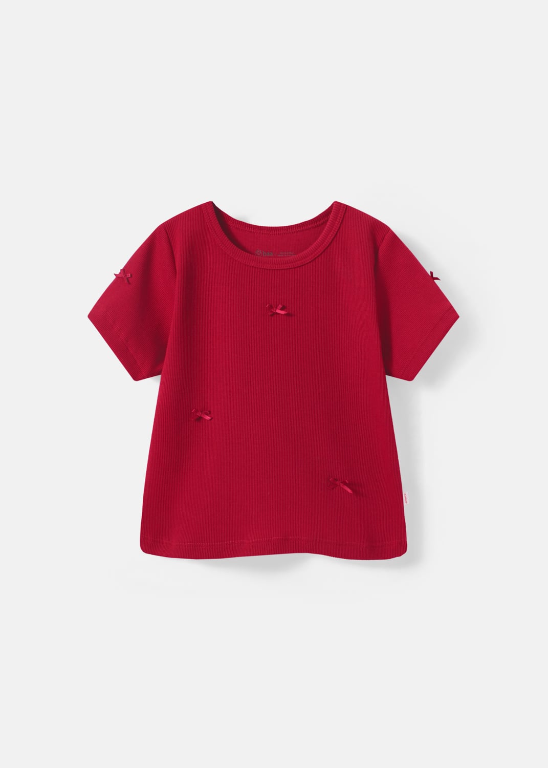 Áo Thun Gân Ngắn Tay Bé Gái Đỏ Nơ