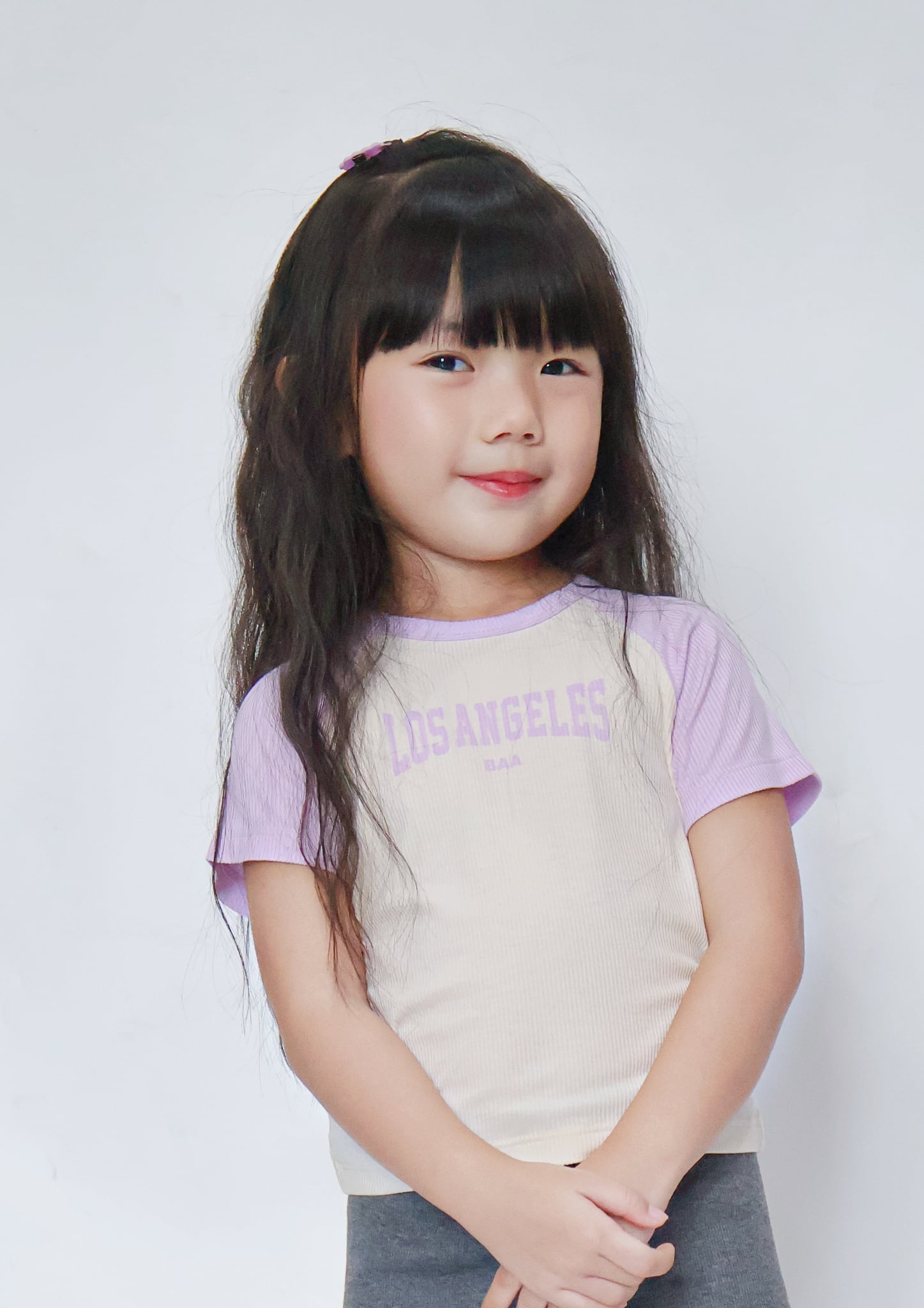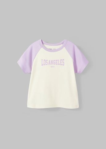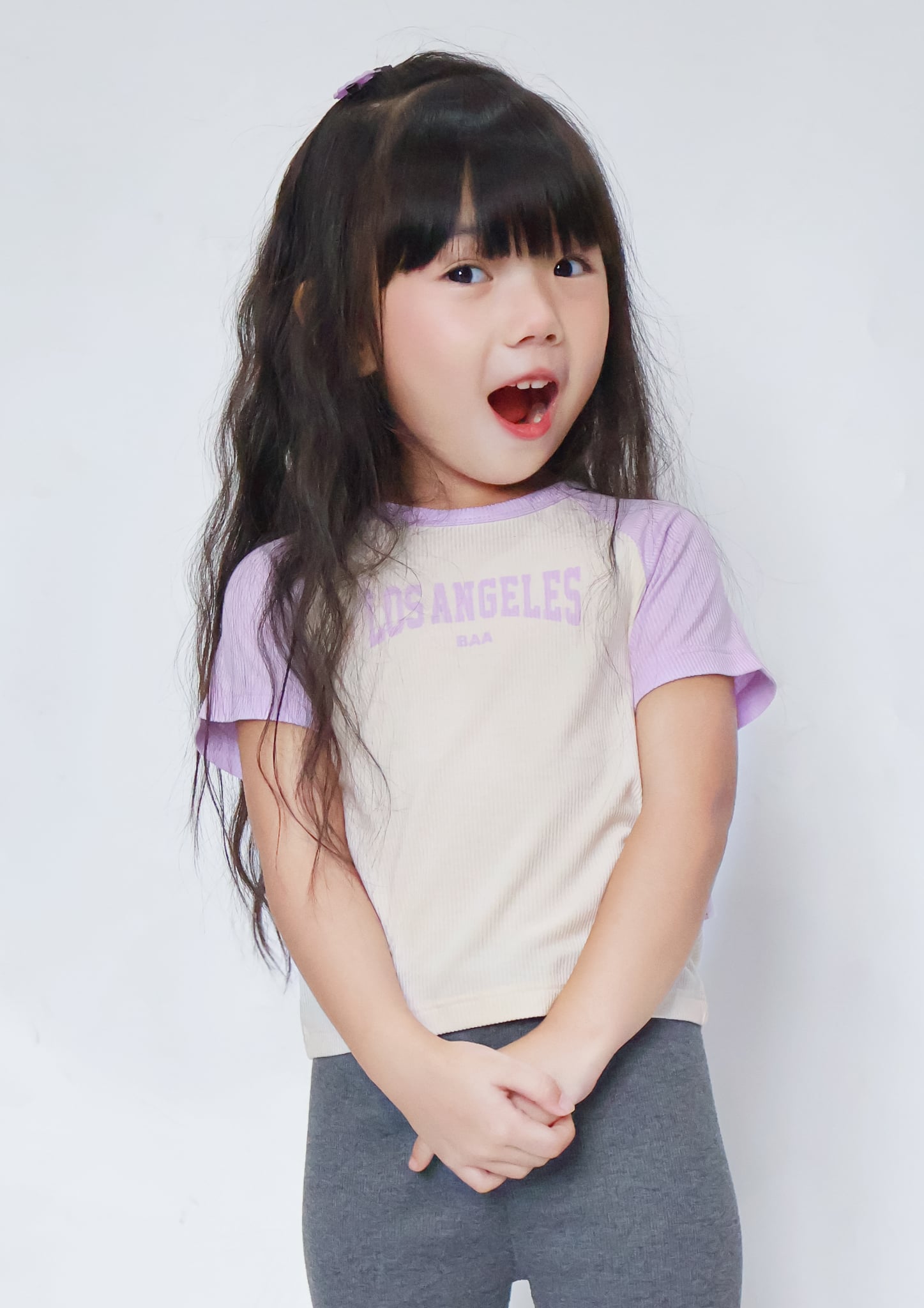 Áo Thun Gân Raglan Bé Gái Kem Phối Tím Los Angeles