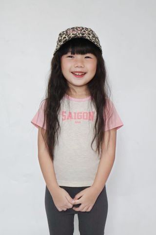 Áo Thun Gân Raglan Bé Gái Xám Melange Phối Hồng Saigon ƯU ĐÃI ĐANG DIỄN RA