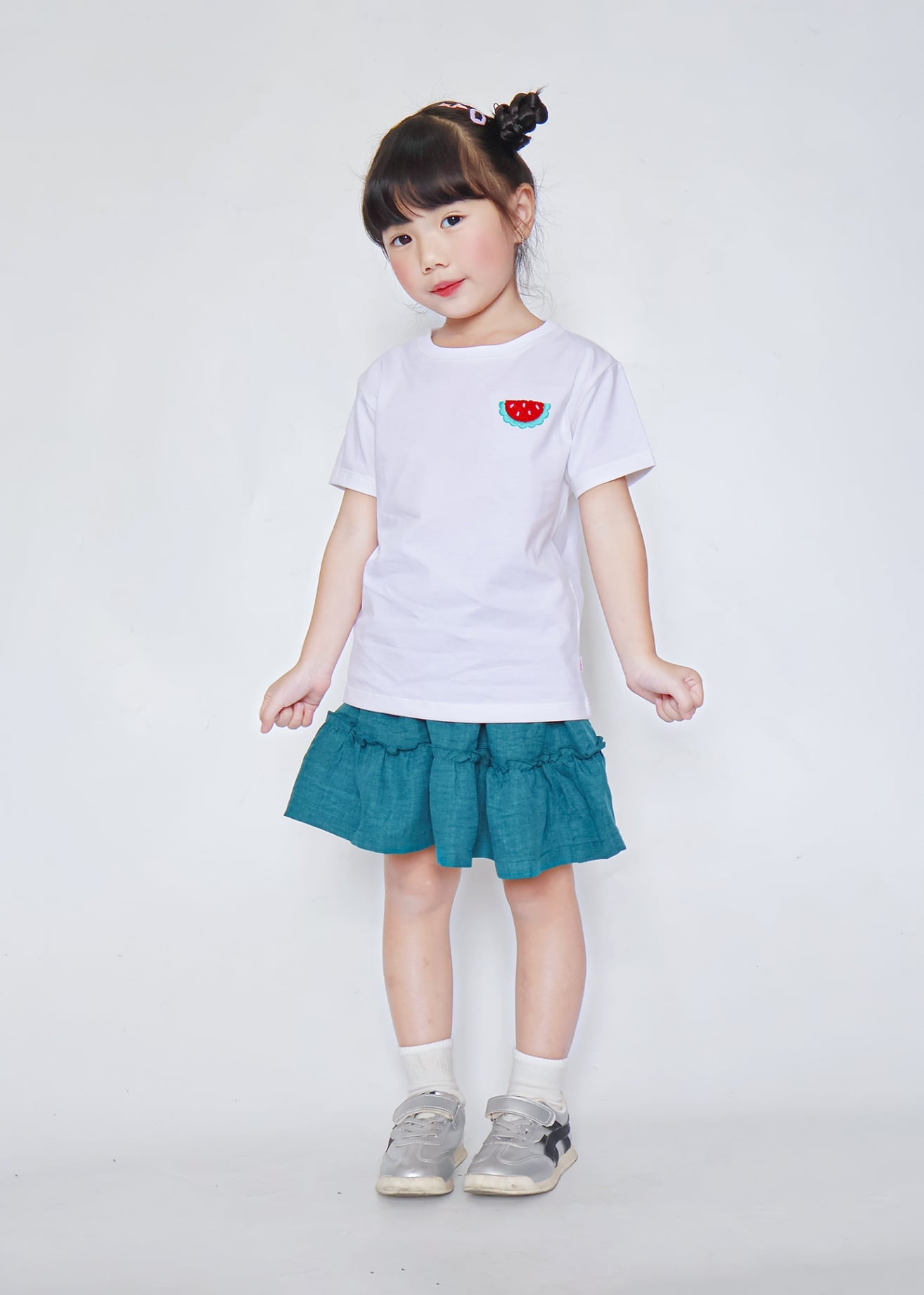 Áo Thun Ngắn Tay Bé Gái Trắng Thêu Xù Dưa Hấu
