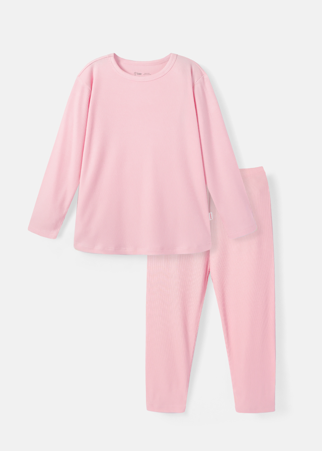 Bộ thun gân dài tay bé gái được làm từ 90% Rayon mát rượi mềm mịn + 10% Spandex co giãn 4 chiều, mang đến cảm giác êm ái, nhẹ tênh và linh hoạt cho bé cả khi ngủ lẫn vui chơi trong nhà.
