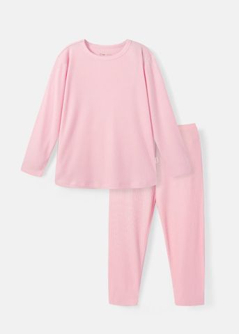 Bộ Thun Gân Dài Tay Bé Gái Hồng Nhạt
