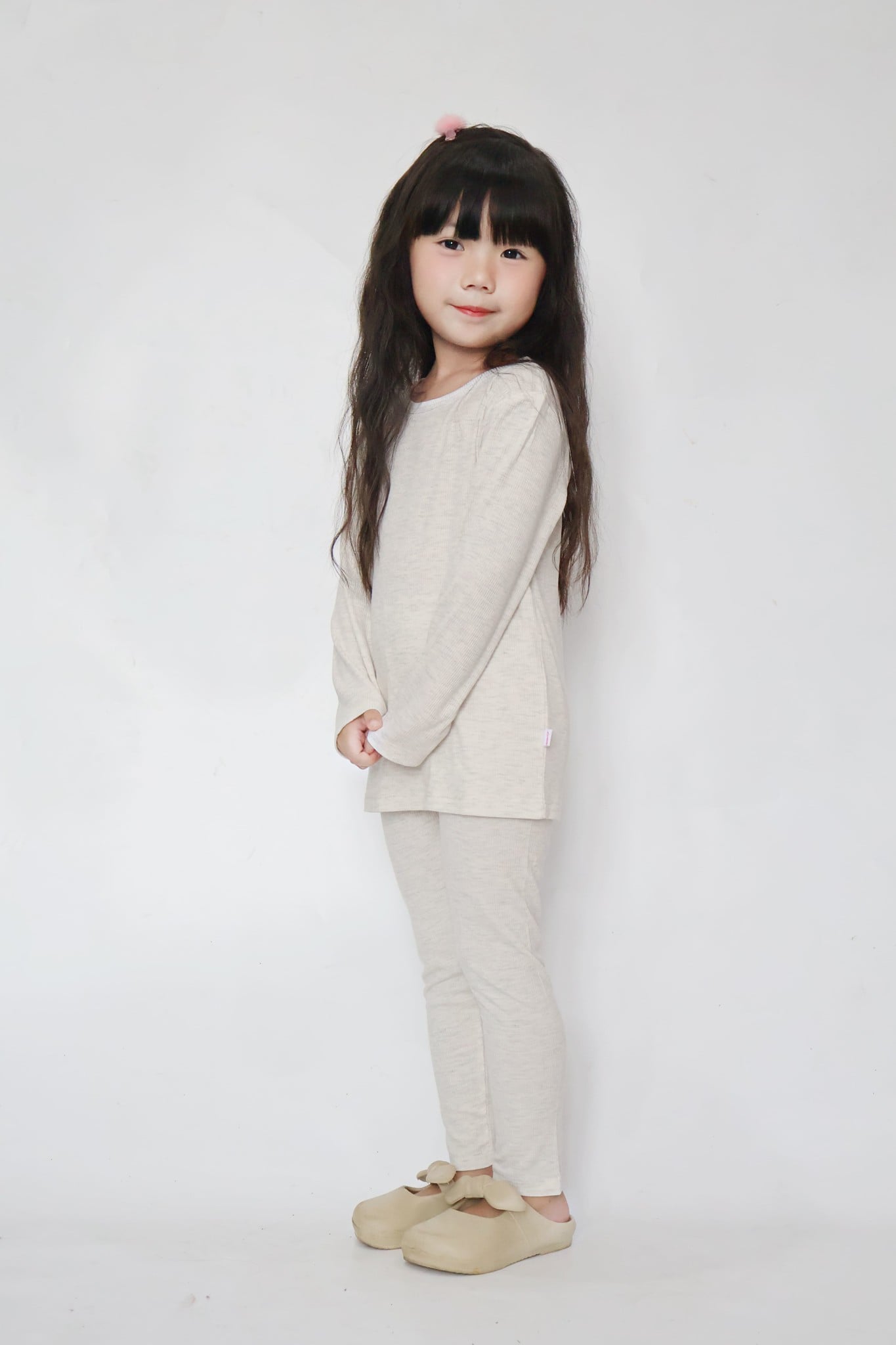 Bộ thun gân dài tay bé gái được làm từ 90% Rayon mát rượi mềm mịn + 10% Spandex co giãn 4 chiều, mang đến cảm giác êm ái, nhẹ tênh và linh hoạt cho bé cả khi ngủ lẫn vui chơi trong nhà.