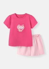 Bộ Thun Ngắn Tay Bé Gái Hồng Tuần Lộc Phối