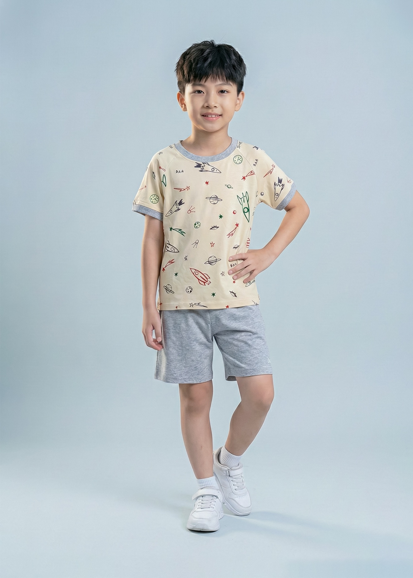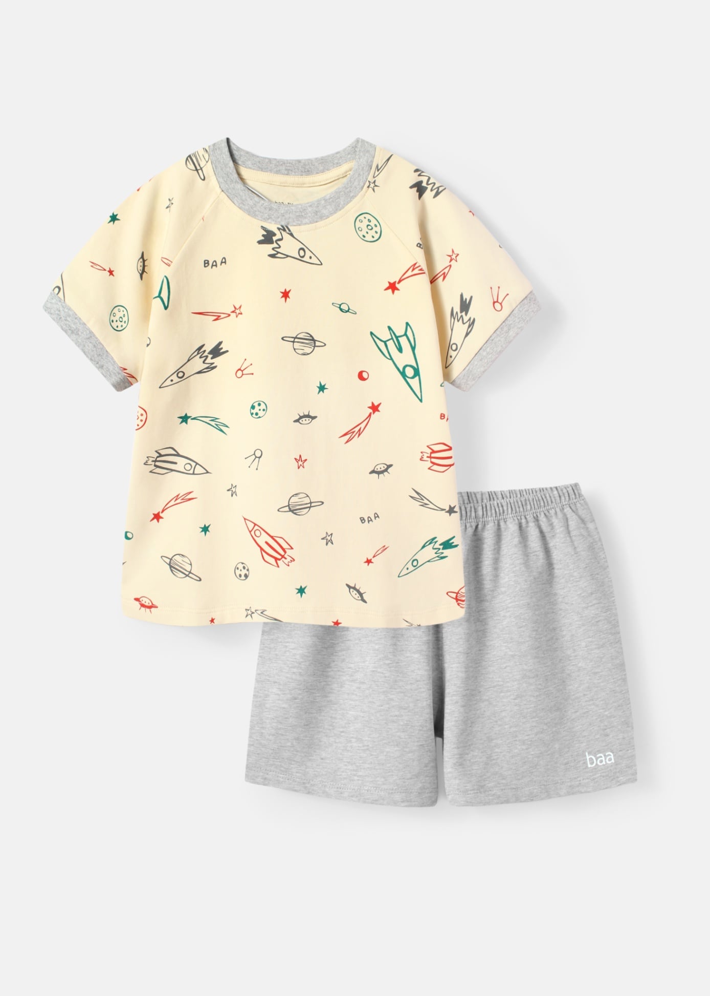 Bộ Thun Ngắn Tay Bé Trai Be Hoạ Tiết Vũ Trụ Phối Xám