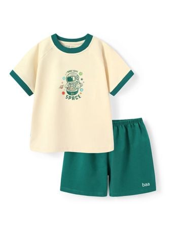 Bộ Thun Ngắn Tay Bé Trai Be Vũ Trụ Phối Xanh Lá