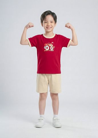 Bộ Thun Ngắn Tay Bé Trai Đỏ Burgundy Xe Đua Phối Be ƯU ĐÃI THÁNG 3