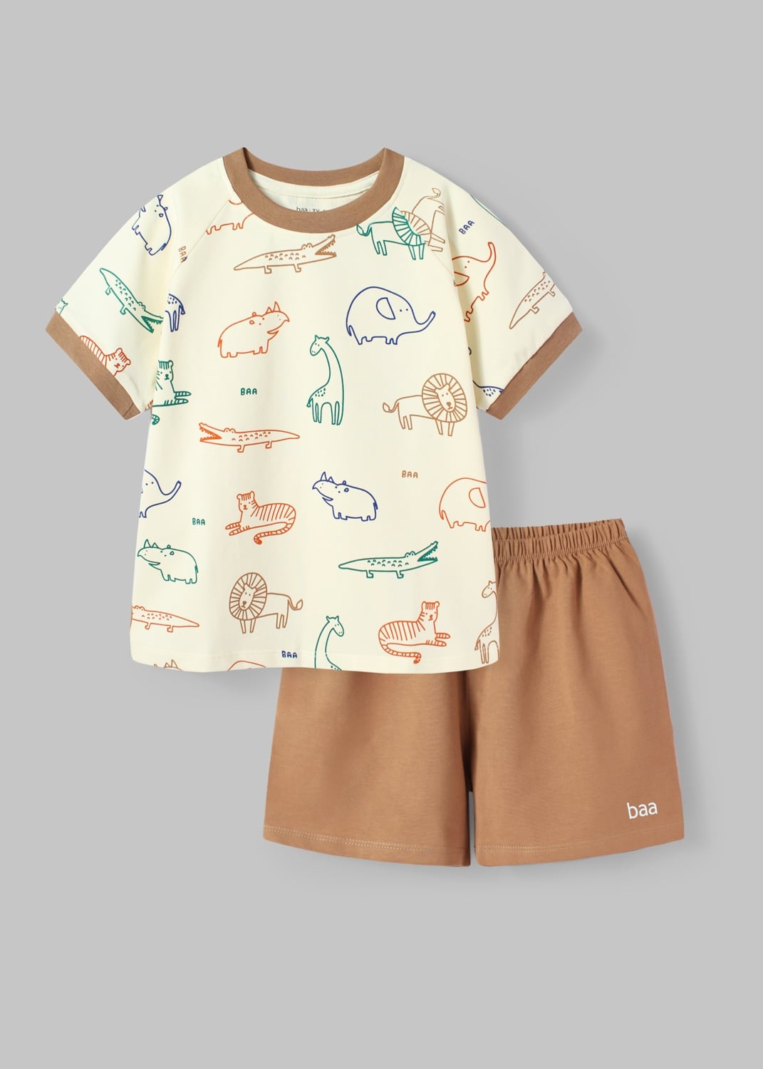 Bộ Thun Ngắn Tay Bé Trai Kem Hoạ Tiết Động Vật Phối Nâu