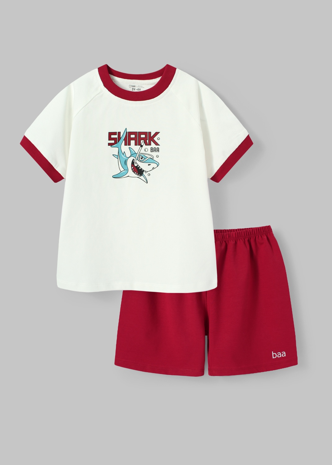 Bộ Thun Ngắn Tay Bé Trai Trắng Cá Mập Phối Đỏ Bungurdy
