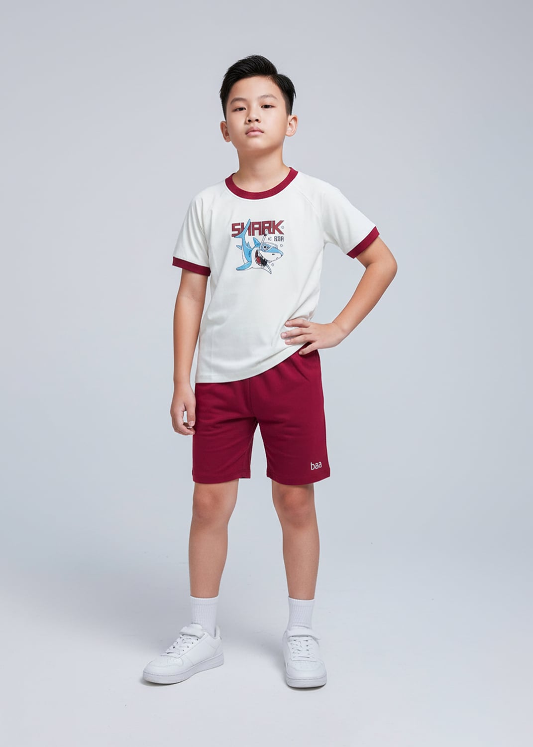 Bộ Thun Ngắn Tay Bé Trai Trắng Cá Mập Phối Đỏ Bungurdy ƯU ĐÃI THÁNG 1