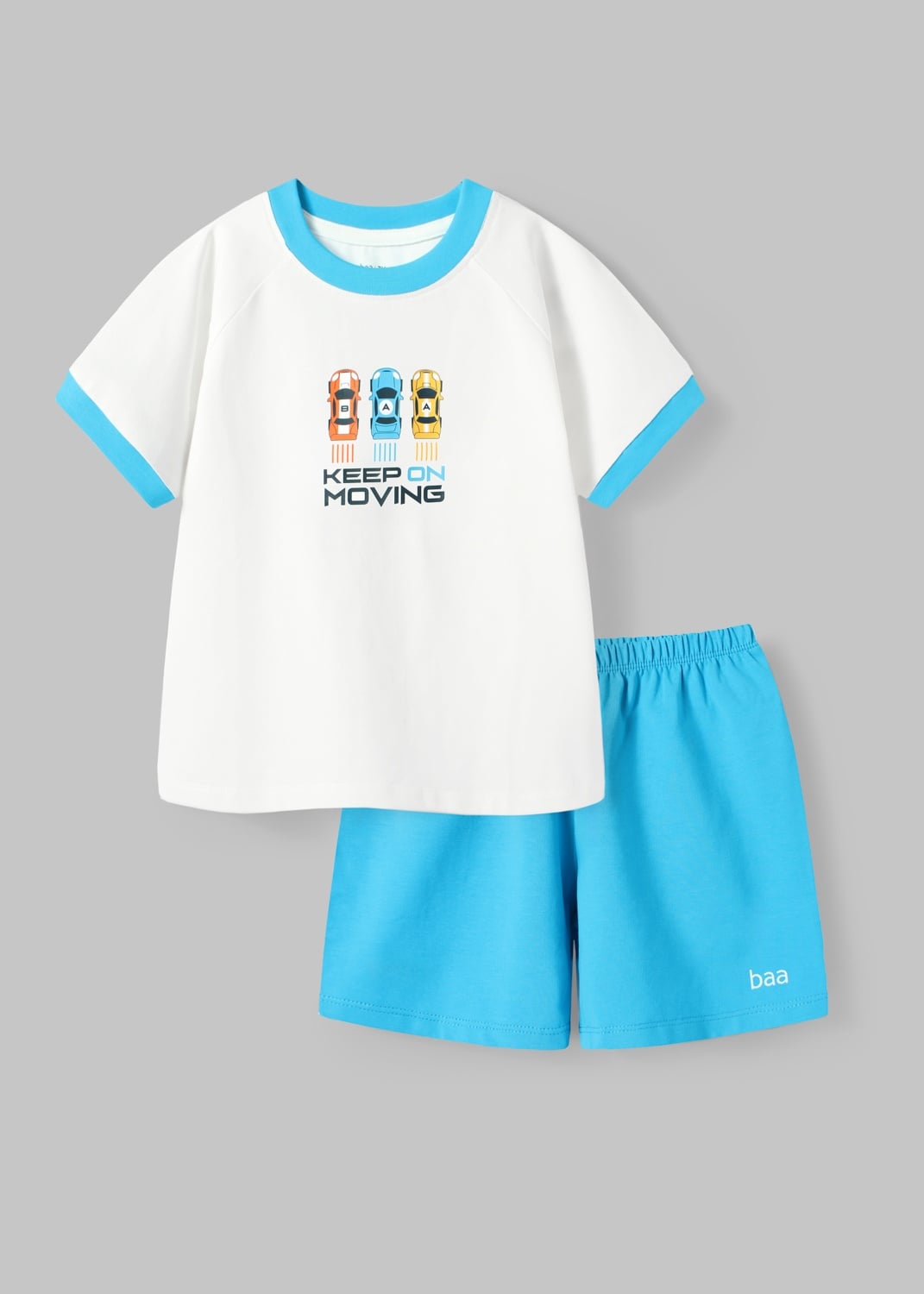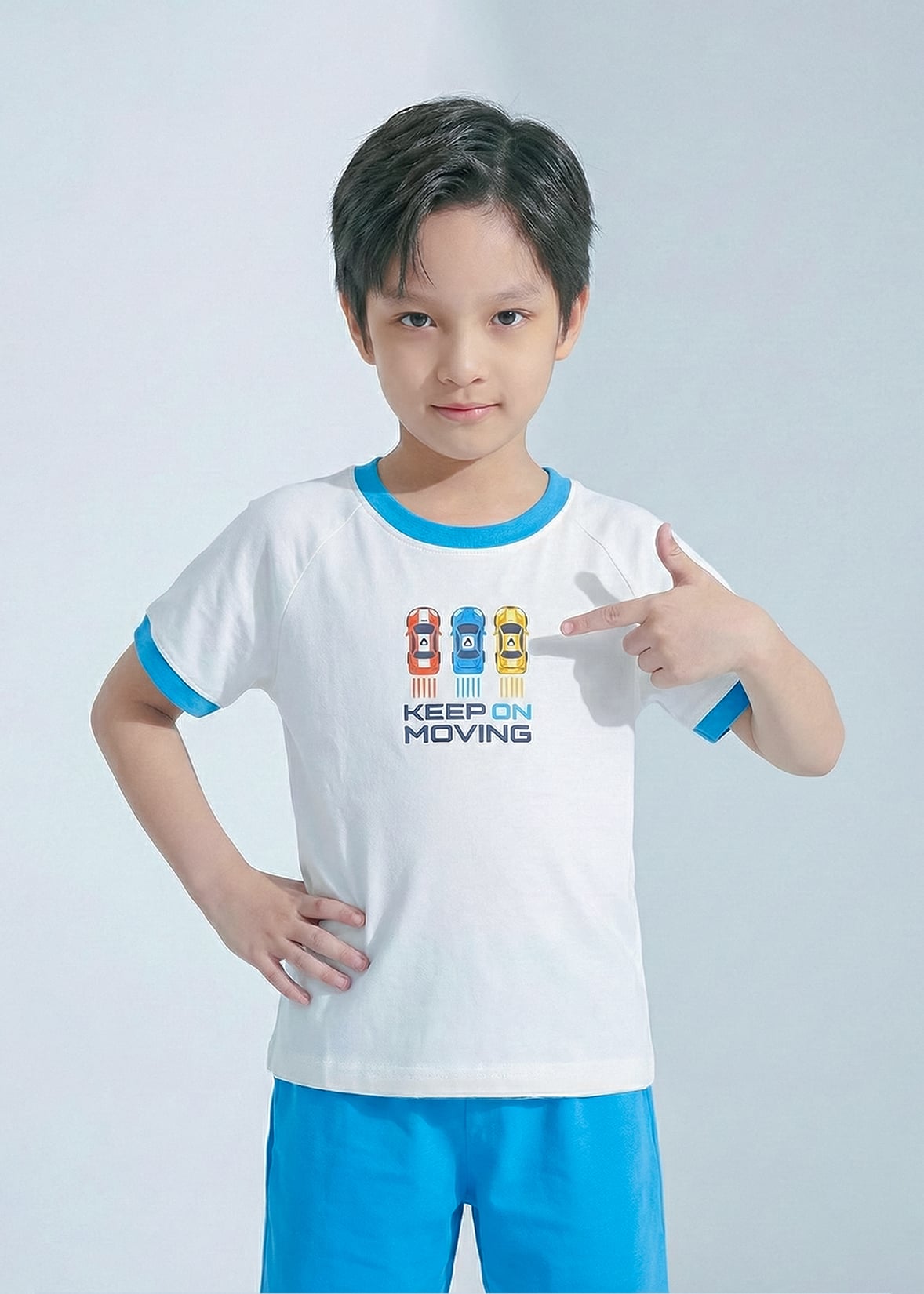 Bộ Thun Ngắn Tay Bé Trai Trắng Xe Đua Phối Xanh