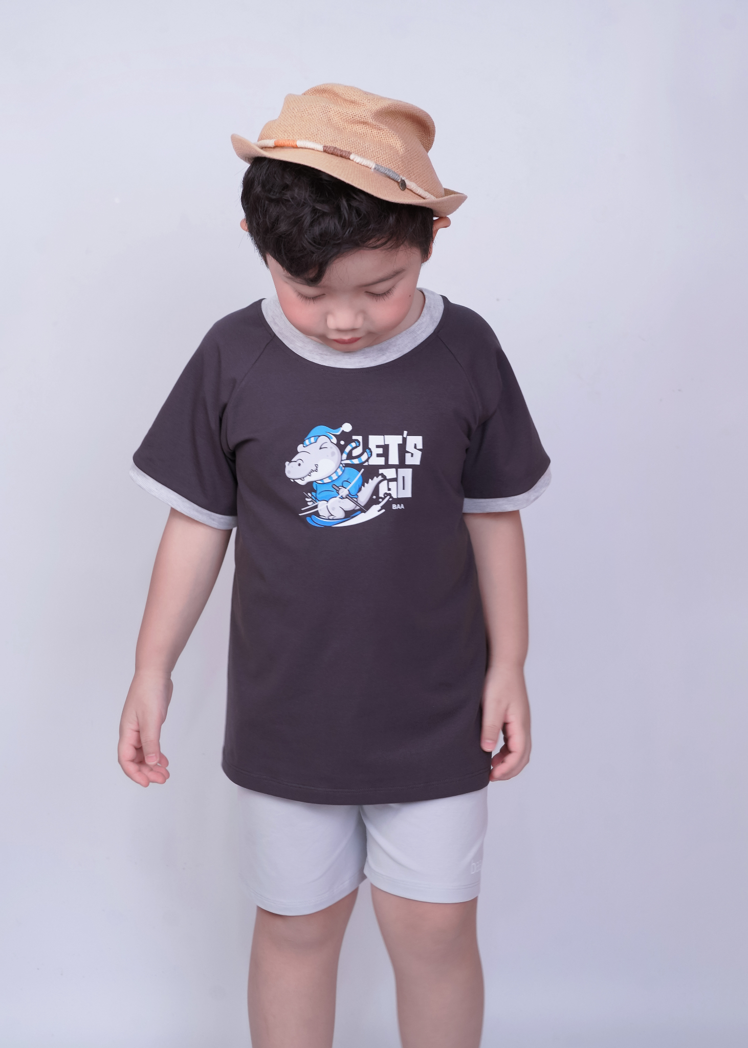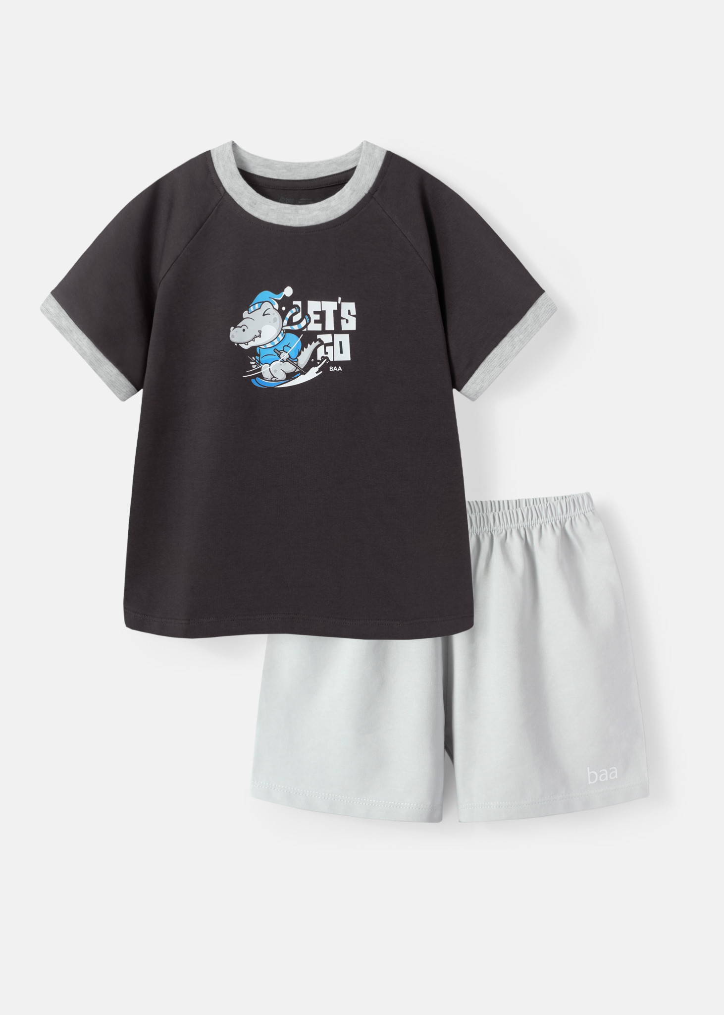 Bộ Thun Ngắn Tay Bé Trai Xám Cá Sấu Phối BC-DB04N-18