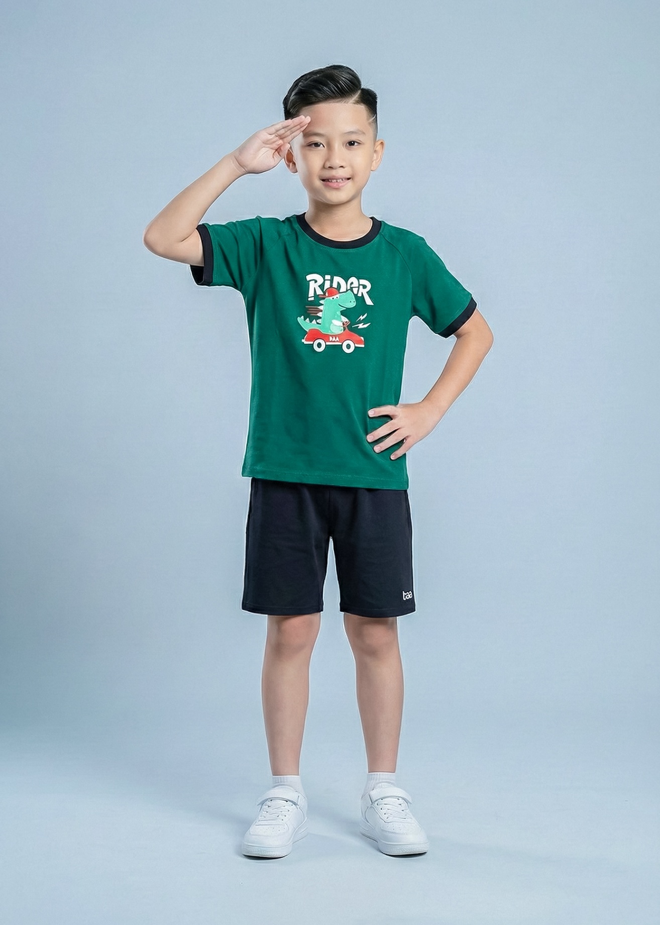 Bộ Thun Ngắn Tay Bé Trai Xanh Khủng Long Phối Đen