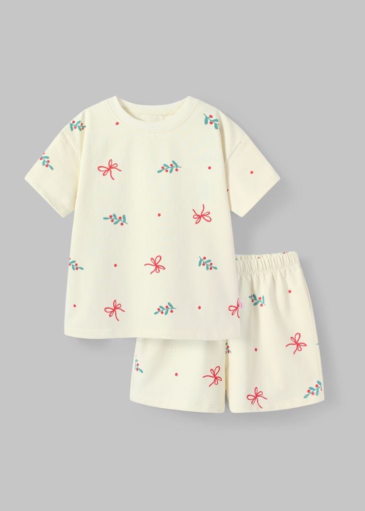 Bộ Thun Ngắn Tay Form Rộng Bé Gái Be Hoạ Tiết Christmas