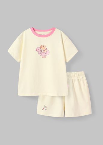 Bộ Thun Ngắn Tay Form Rộng Bé Gái Kem Be Capy