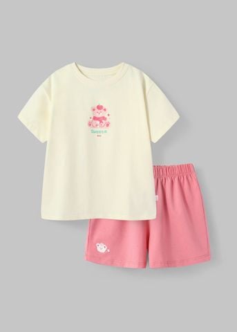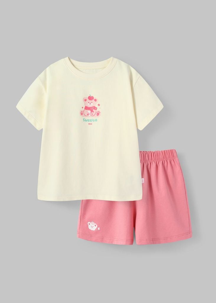 Bộ Thun Ngắn Tay Form Rộng Bé Gái Kem Sweet Bear Phối Hồng ƯU ĐÃI THÁNG 1