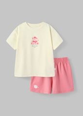 Bộ Thun Ngắn Tay Form Rộng Bé Gái Kem Sweet Bear Phối Hồng