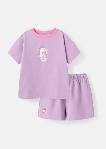 Bộ Thun Ngắn Tay Form Rộng Bé Gái Tím Nhạt Unicorn