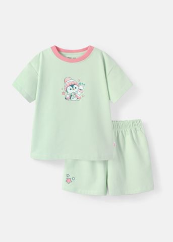 Bộ Thun Ngắn Tay Form Rộng Bé Gái Xanh Nhạt Chim Cánh Cục Xmas