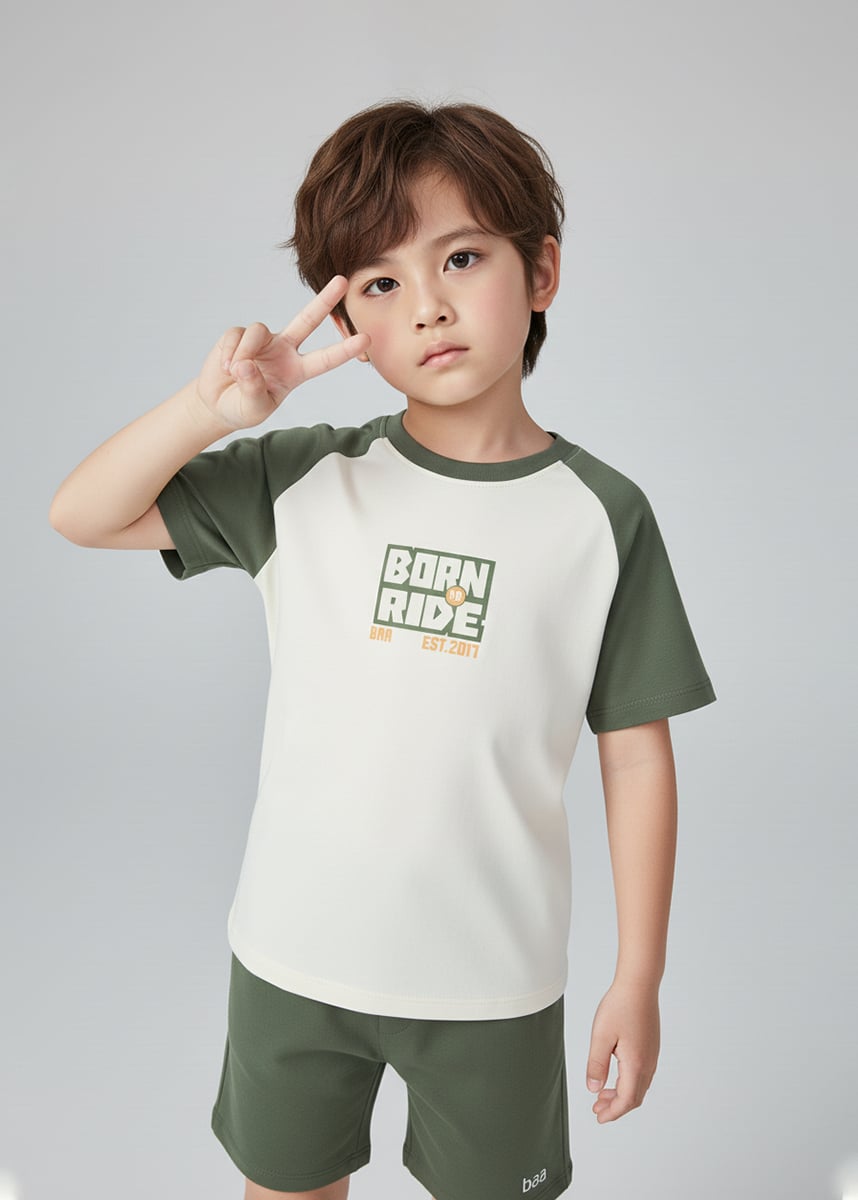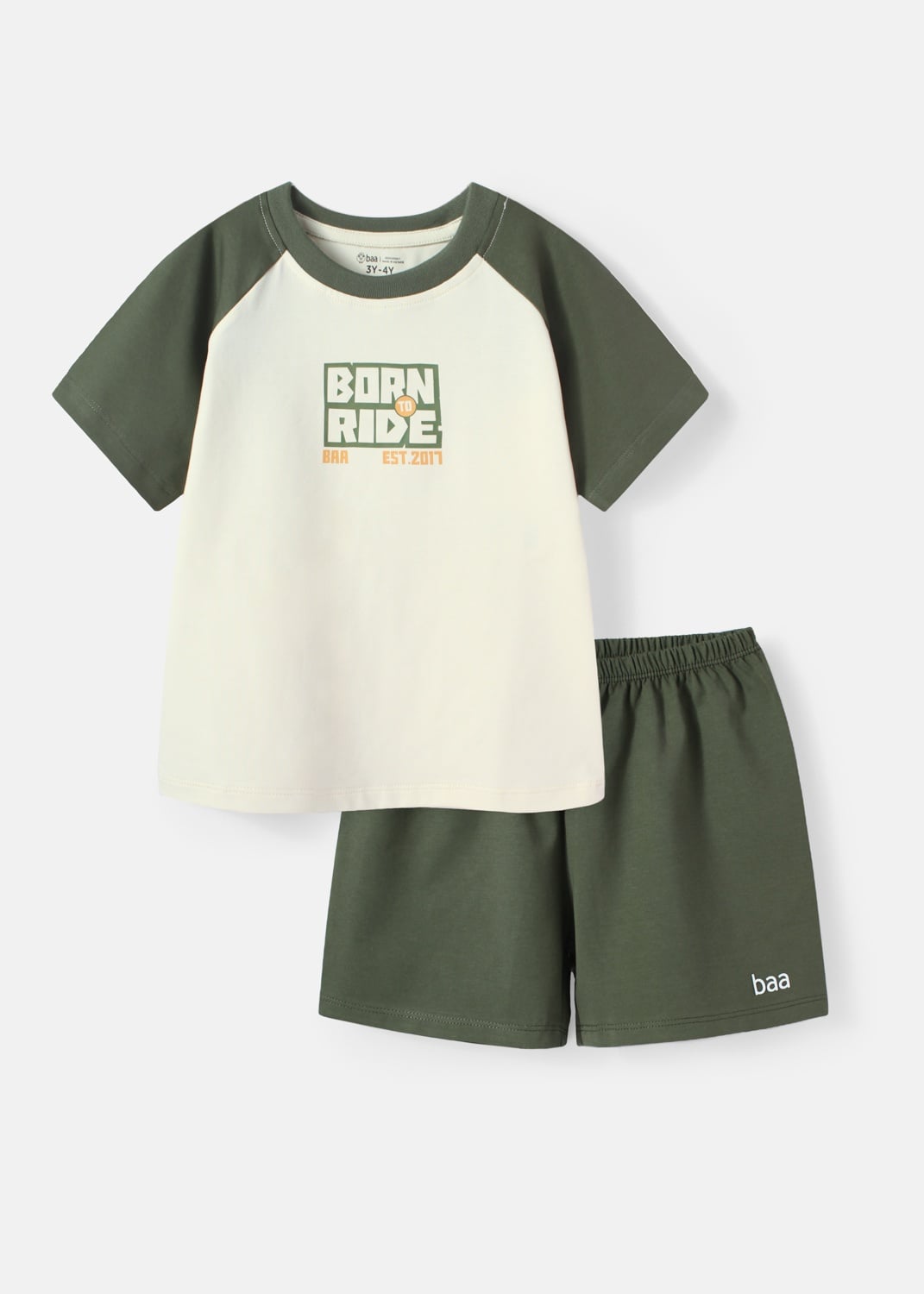 Bộ Thun Tay Raglan Bé Trai Kem Phối Xanh Lá Born To Ride