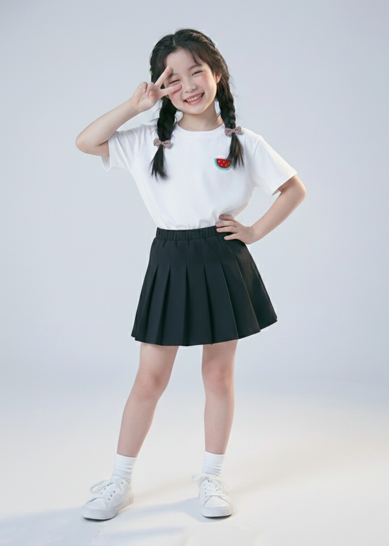 Chân Váy Quần Xếp Ly Bé Gái Đen 06
