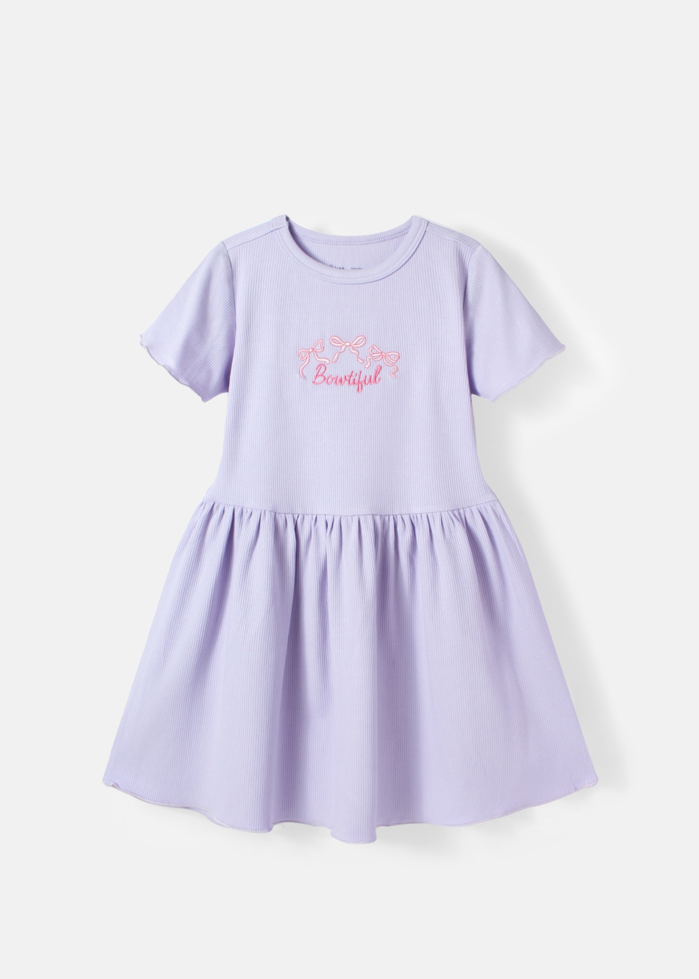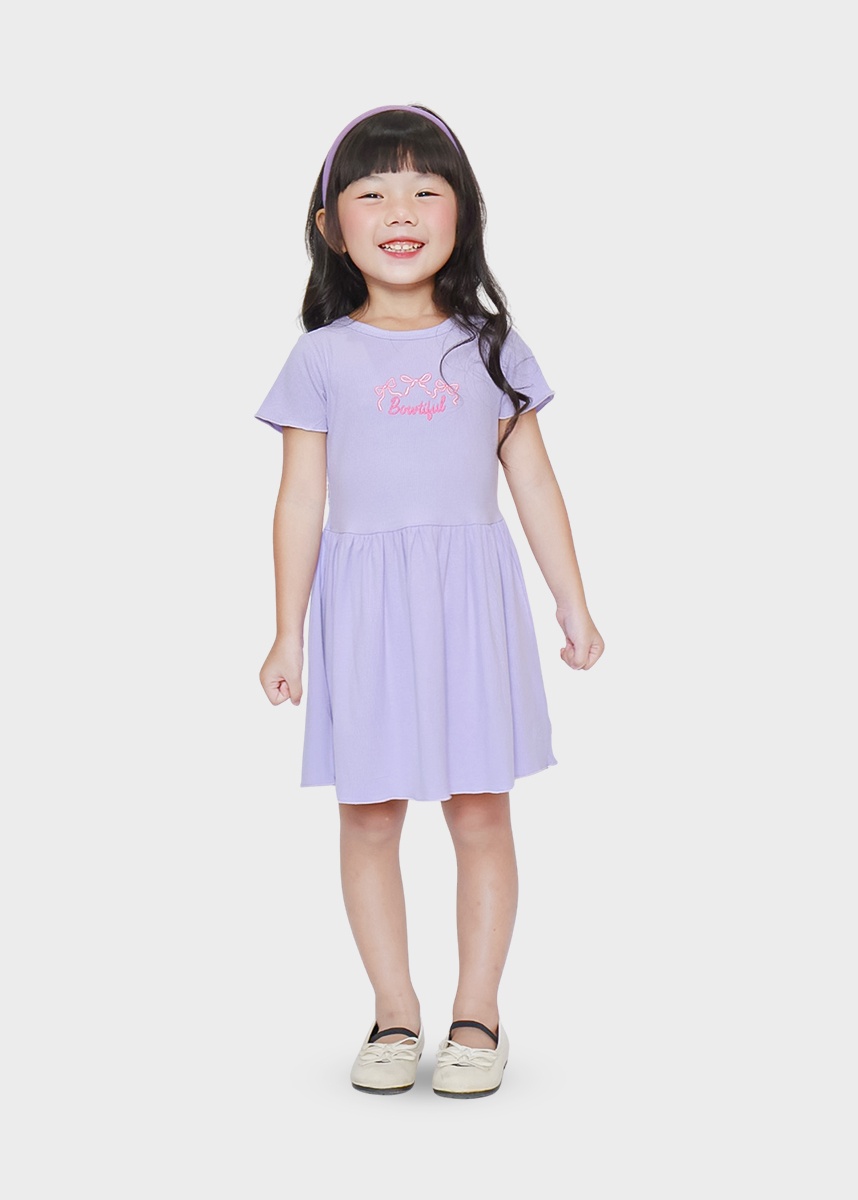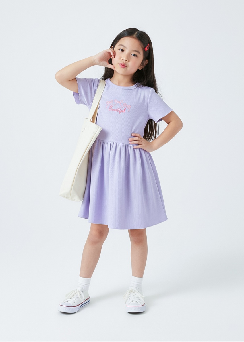 Đầm Thun Kiểu Bé Gái Tím Gân Thêu Nơ