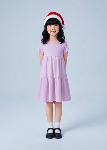 Đầm Thun Kiểu Hai Tầng Ngắn Tay Bé Gái Tím
