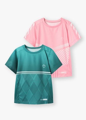Set 2 Áo Thun Thể Thao Siêu Nhẹ Ultra Light Cho Bé (Xanh Teal + Hồng)